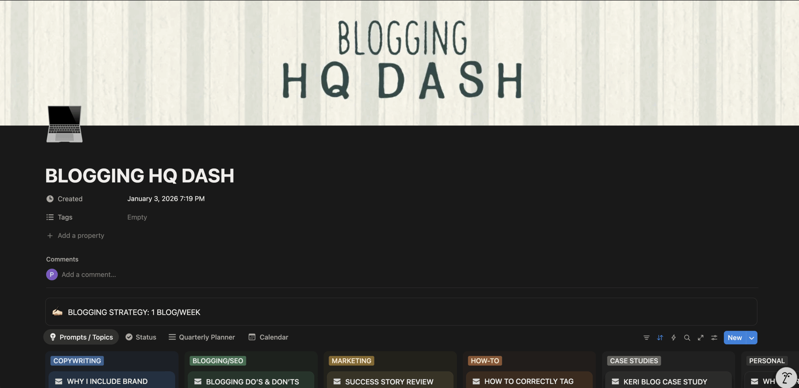 We use our Blogging HQ dash to organize all of our blogging ideas before we ever consider writing them.